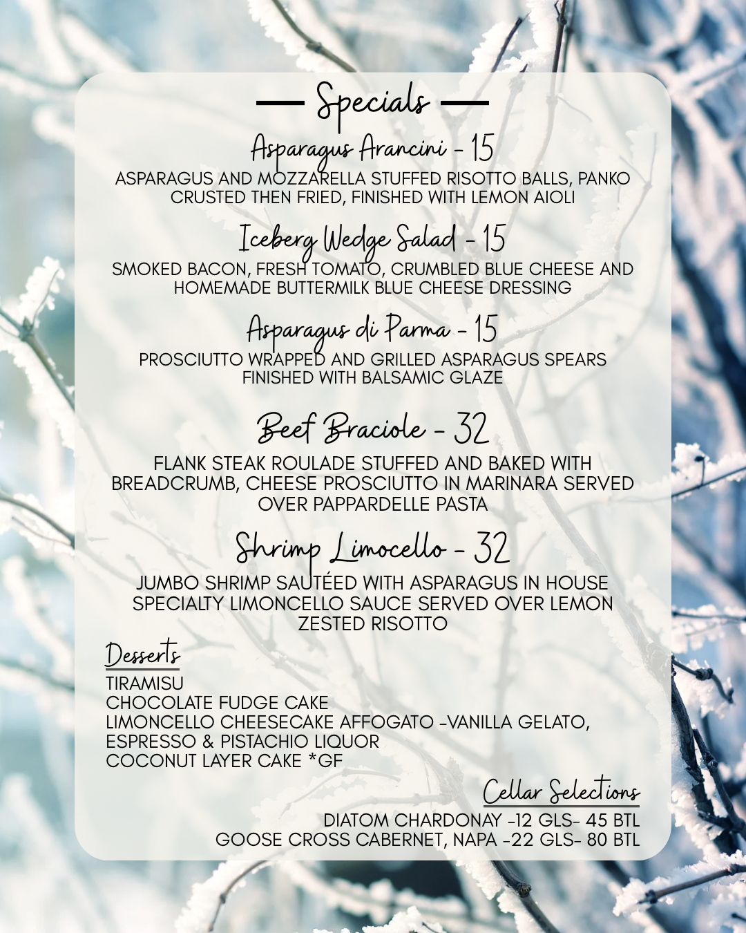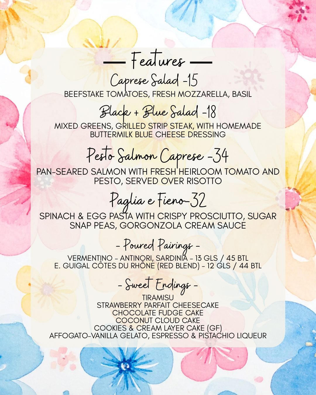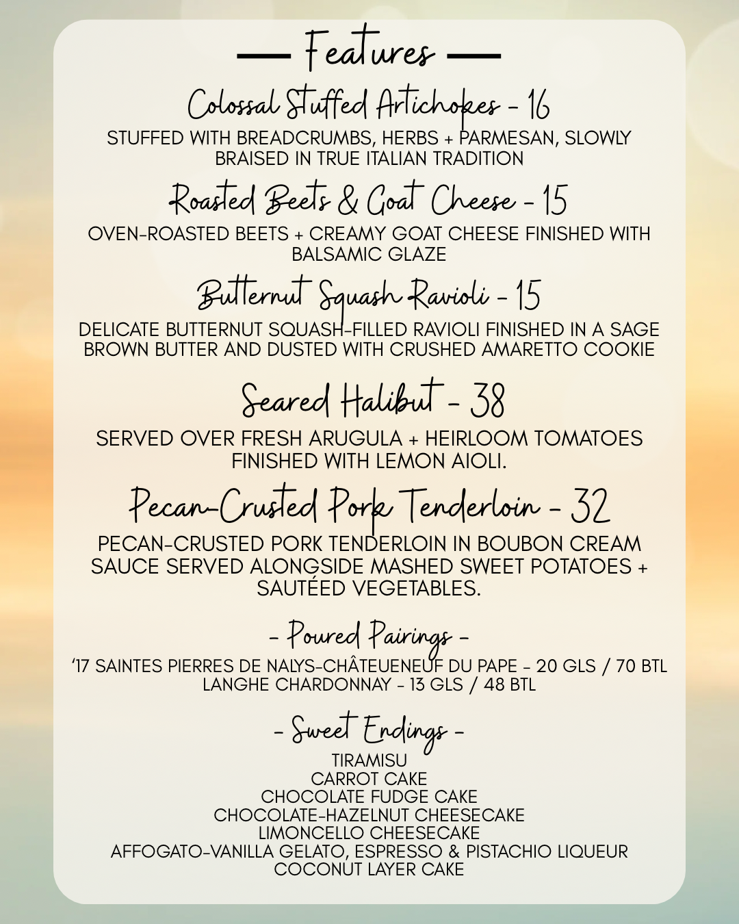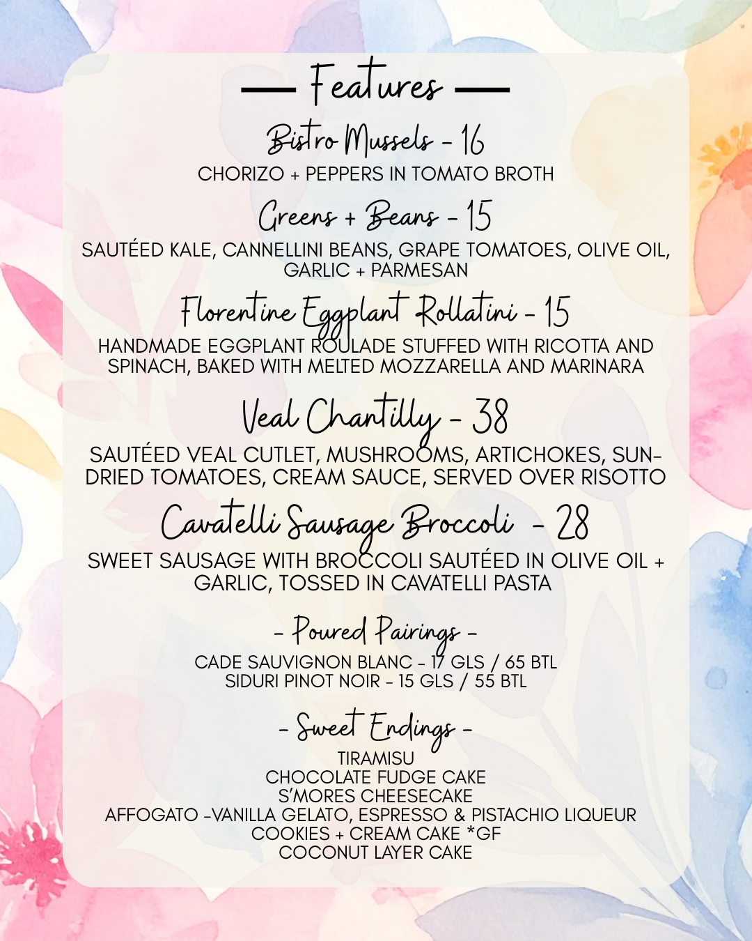 Here we try to offer our customers something that they won’t experience anywhere else, a harmonic pairing of food and wine that tantalizes tastes buds. We educate and inform our customers with regular wine tastings and other charitable social gatherings that always seem to revolve around our love of wine. The days of the snobby sommelier are over. Today’s wine specialist is younger, better educated and more enthusiastic than ever. Our wine program at the Village Pizzeria is a direct reflection of the passion we feel for food and wine, and it is so fulfilling for us to share that with everyone we meet.