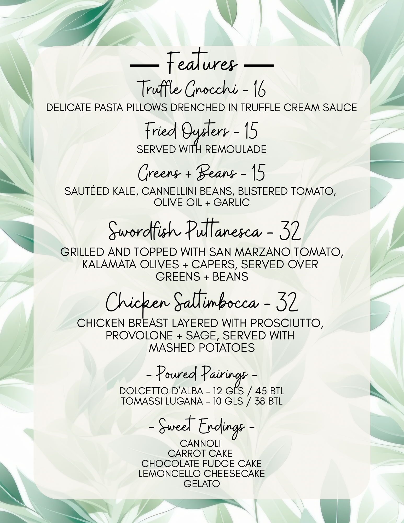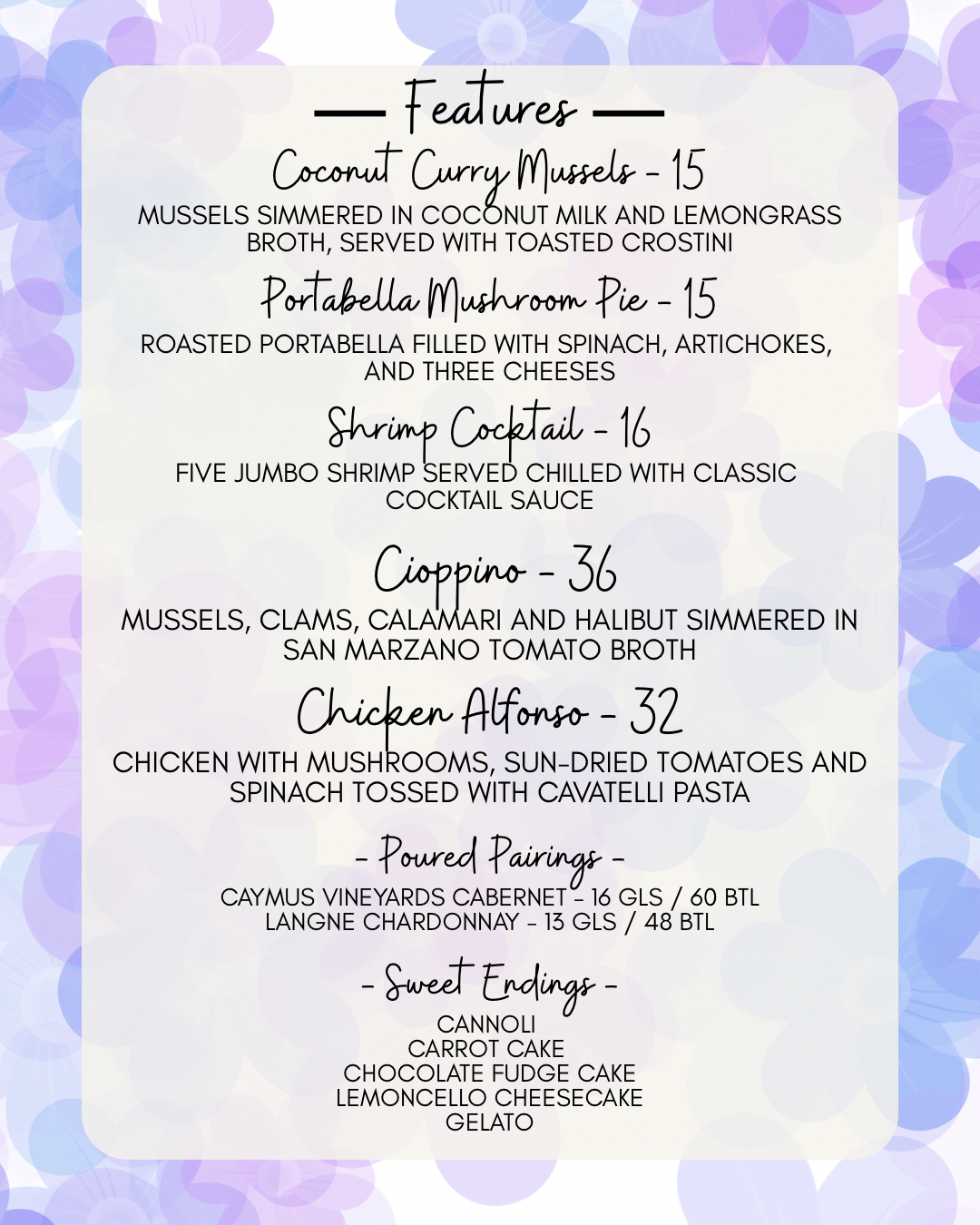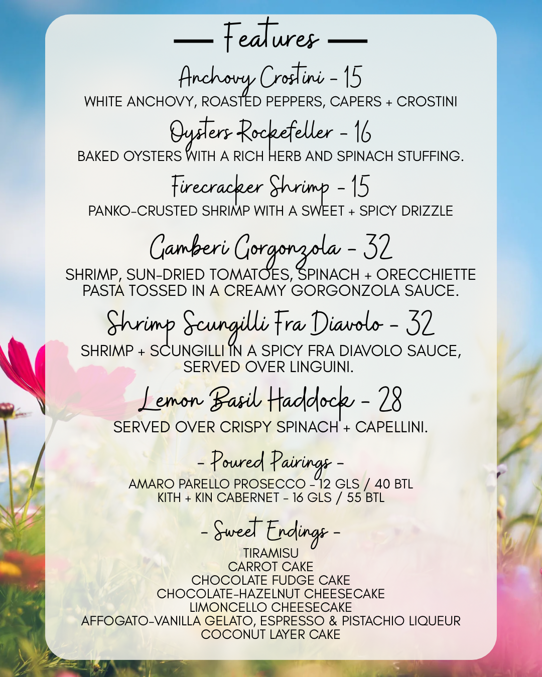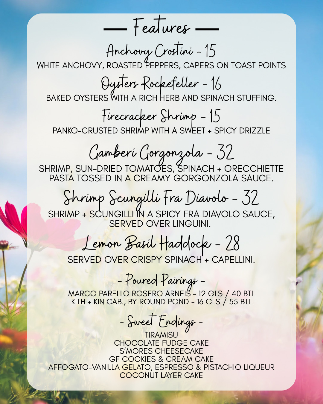 Here we try to offer our customers something that they won’t experience anywhere else, a harmonic pairing of food and wine that tantalizes tastes buds. We educate and inform our customers with regular wine tastings and other charitable social gatherings that always seem to revolve around our love of wine. The days of the snobby sommelier are over. Today’s wine specialist is younger, better educated and more enthusiastic than ever. Our wine program at the Village Pizzeria is a direct reflection of the passion we feel for food and wine, and it is so fulfilling for us to share that with everyone we meet.