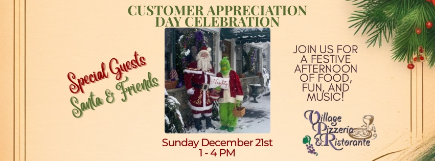 Village Pizzeria & Ristorante is excited to host our Customer Appreciation Day as a special thank-you to our amazing community.
